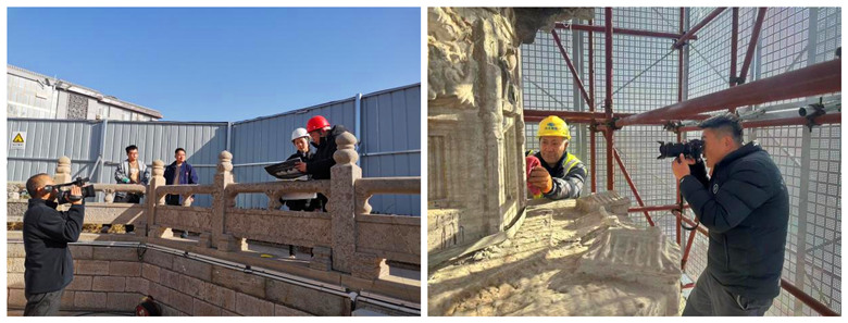 2023年12月8日,趙州陀羅尼經(jīng)幢保護(hù)工程施工現(xiàn)場(chǎng),我公司技術(shù)人員攻堅(jiān)克難、不畏嚴(yán)寒,依然奮斗在施工崗位。在新搭設(shè)的腳手架上,他們牢記文物保護(hù)方針,采用科學(xué)、合理的技術(shù)手段對(duì)石質(zhì)文物表層結(jié)殼、結(jié)膜污染進(jìn)行清理,并依照方案核對(duì)塔身各類(lèi)殘損病害,為后期的修繕工作做足準(zhǔn)備。